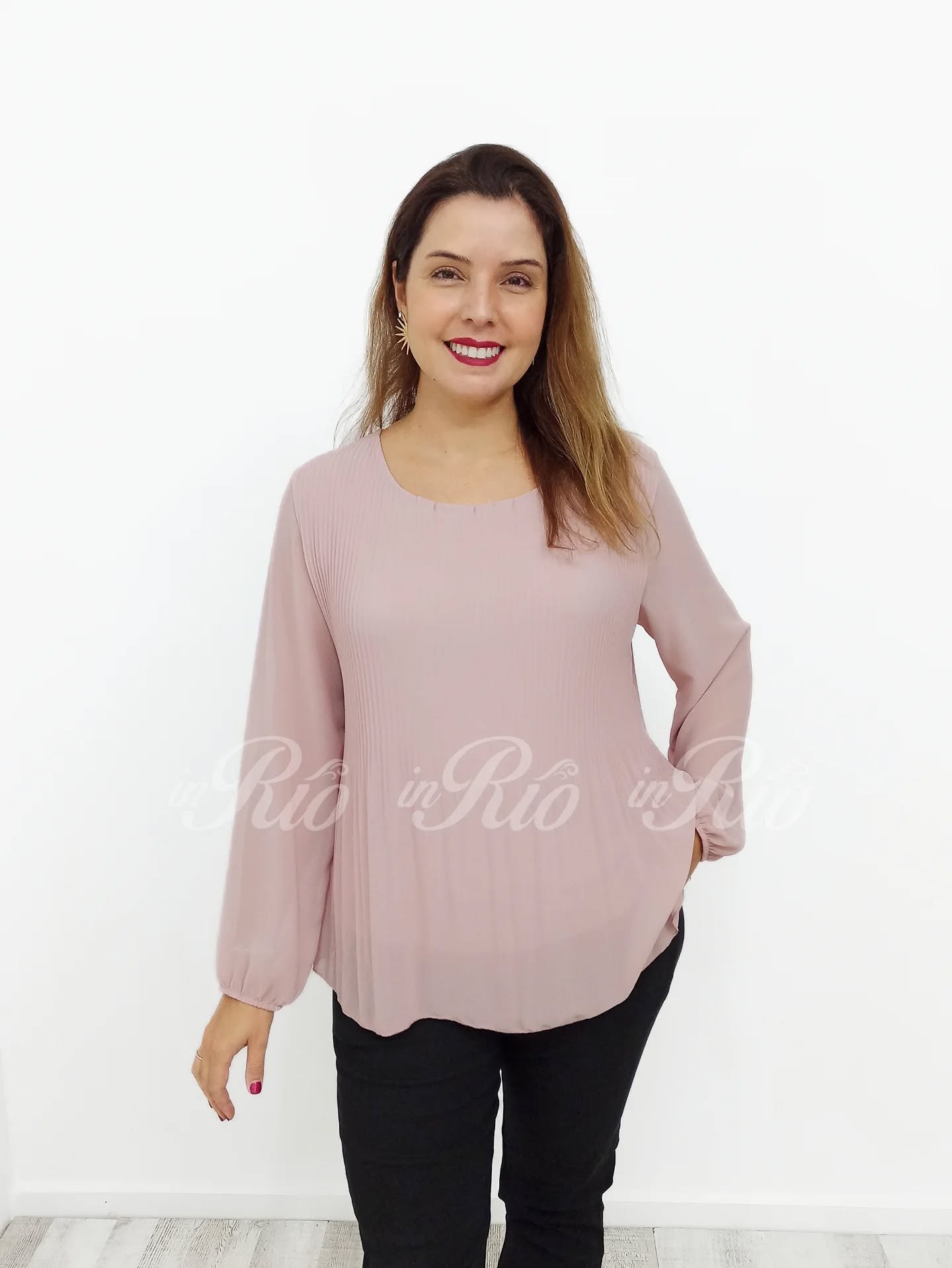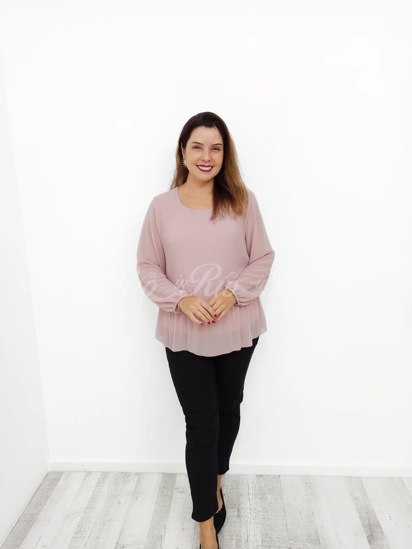Esta blusa com plissado a frente é pura delicadeza e elegância!