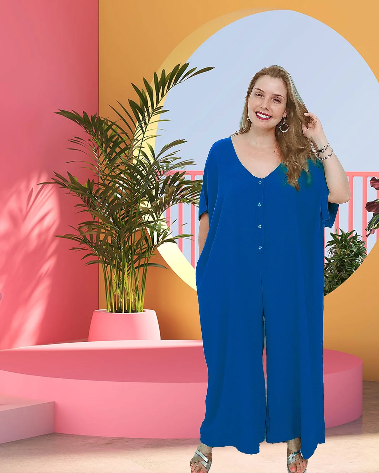 Bom gosto e pura elegância com o nosso macacão plus size em formato pantalona.
