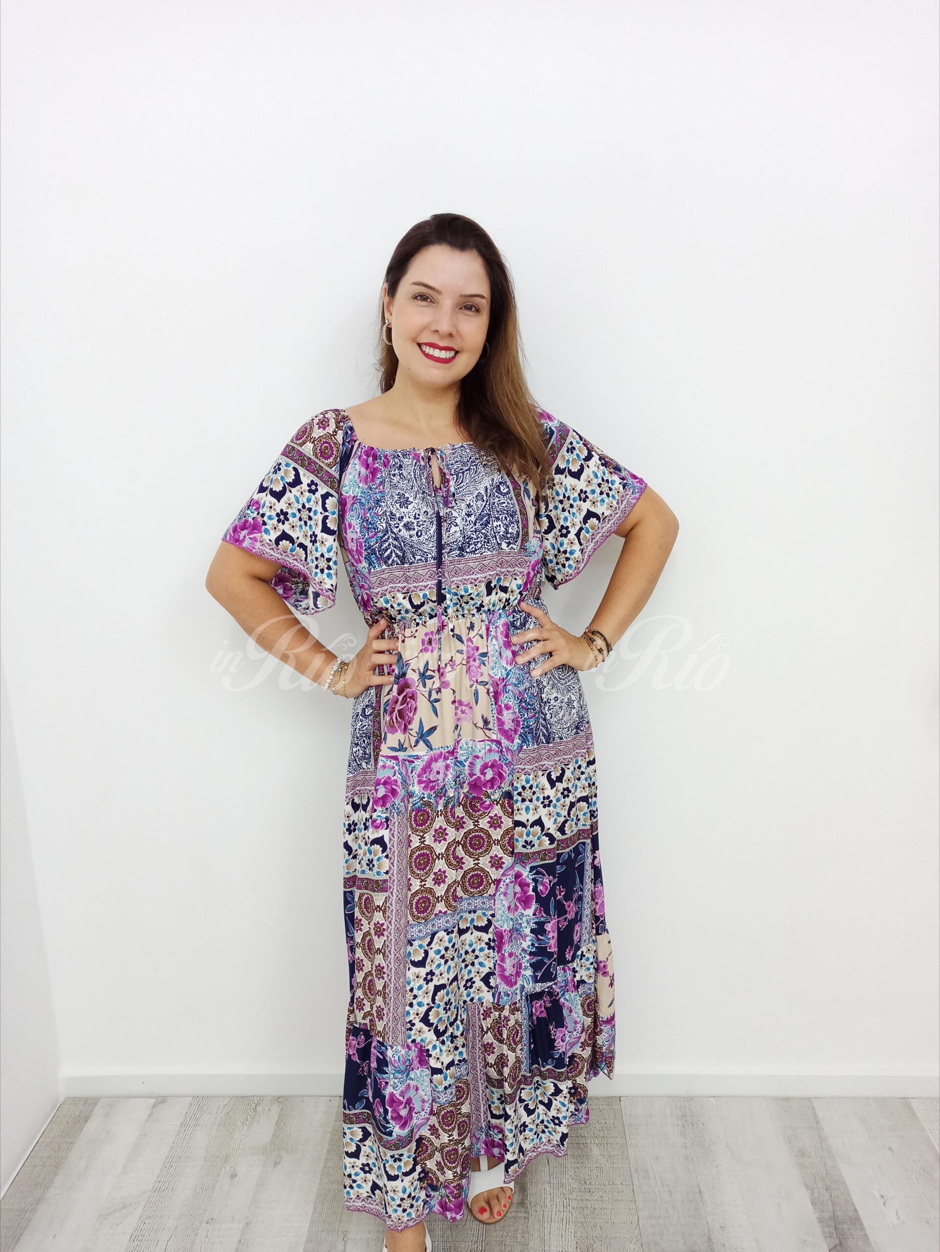 Seja o primeiro a avaliar “Vestido longo com padrão em patchwork”